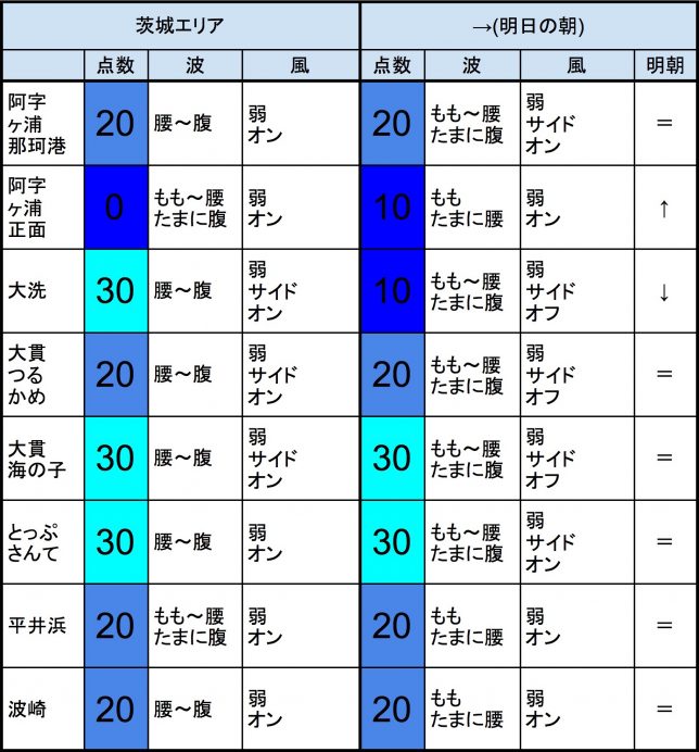 8月4日(土)の茨城の波 2018年8月4日 / U / コメントする 【茨城エリア】-“・茨城エリアはもも〜腰〜腹くらいの波、弱めの風のスタート、いまいちなコンディションで、午前から昼にかけても状況はあまり変わらなさそうです。午後から夕方にかけてもコンディションはあまり変わらなさそうです。 ・今もこの後もそれなりな感じで、早めなら、大貫海の子、とっぷさんて、あたり、後半なら、とっぷさんて、あたりが狙い目でしょうか。-“