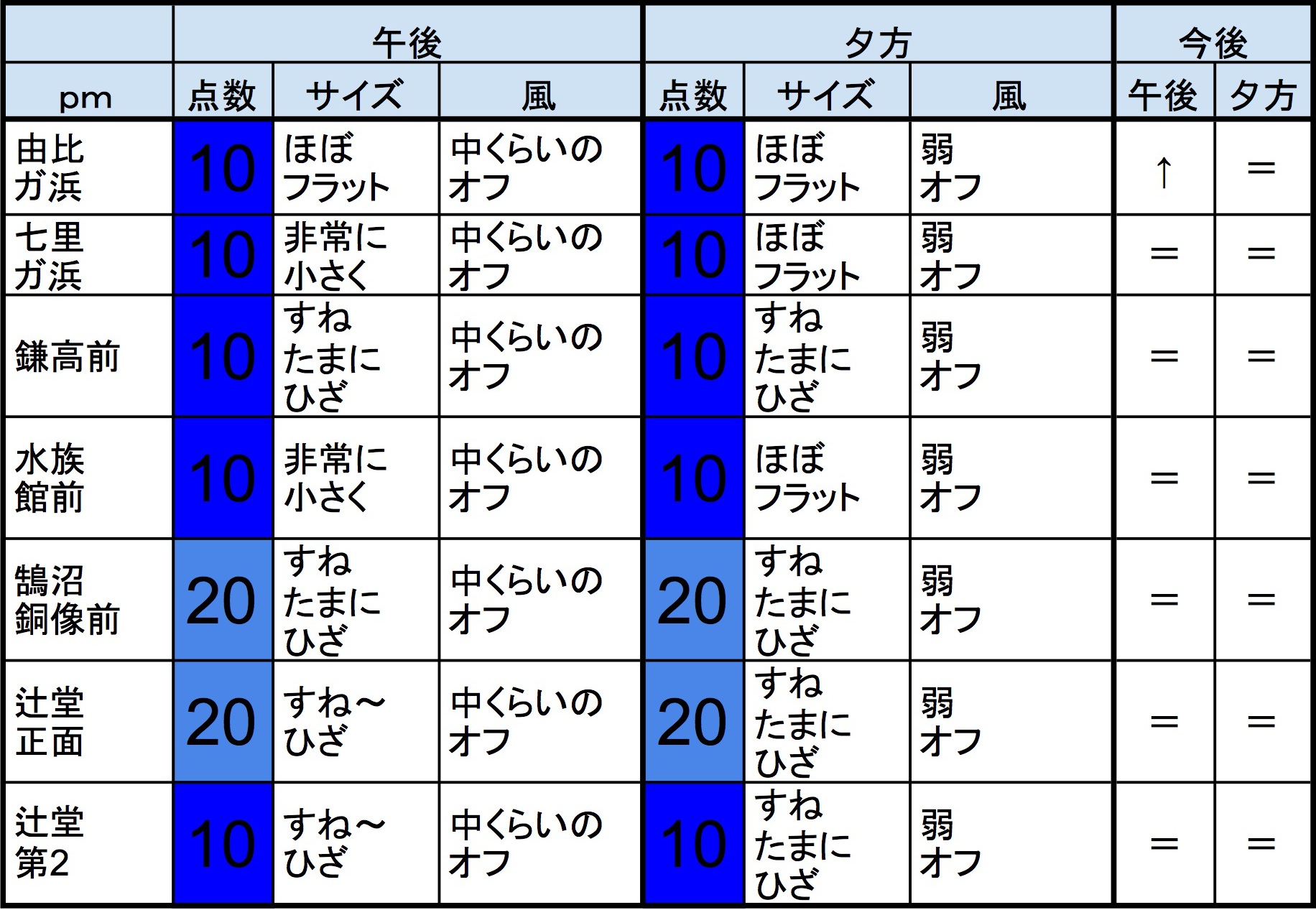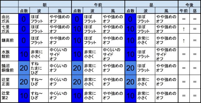 10月14日(日)朝の湘南の波 2018年10月14日 / U / コメントする 【湘南東エリア】-“・湘南 東エリアはほぼフラットに近く、オフショアベースの風、プアなコンディションで、午前から昼にかけても状況はあまり変わらなさそうです。” 【湘南西エリア】-・湘南 西エリアはすね〜ひざくらいの波、オフショアベースの風、プアなコンディションで、午前から昼にかけても状況はあまり変わらなさそうです。-