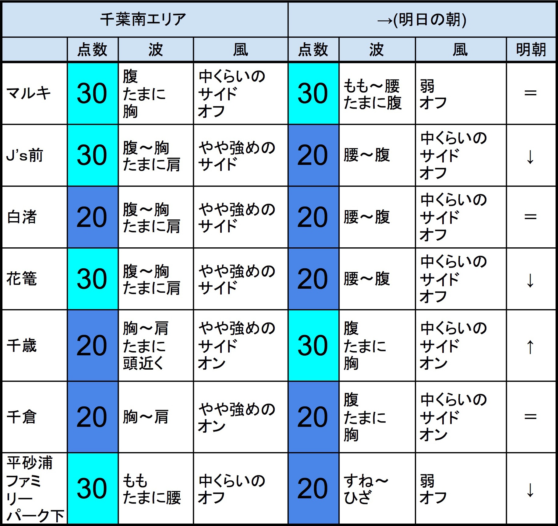 12月22日(土)最終〜明日12月23日(日)朝の千葉南の波 2018年12月22日 / U / コメントする 【千葉南エリア】-“・明朝の千葉南エリアは腰〜腹くらいの波、オフショアベースの風、いまいちなコンディションでのスタートとなりそうです。- ・マルキ、周辺あたりでは、多少期待できそうでしょうか。千歳、周辺あたりでは、辛うじてできそうでしょうか。”