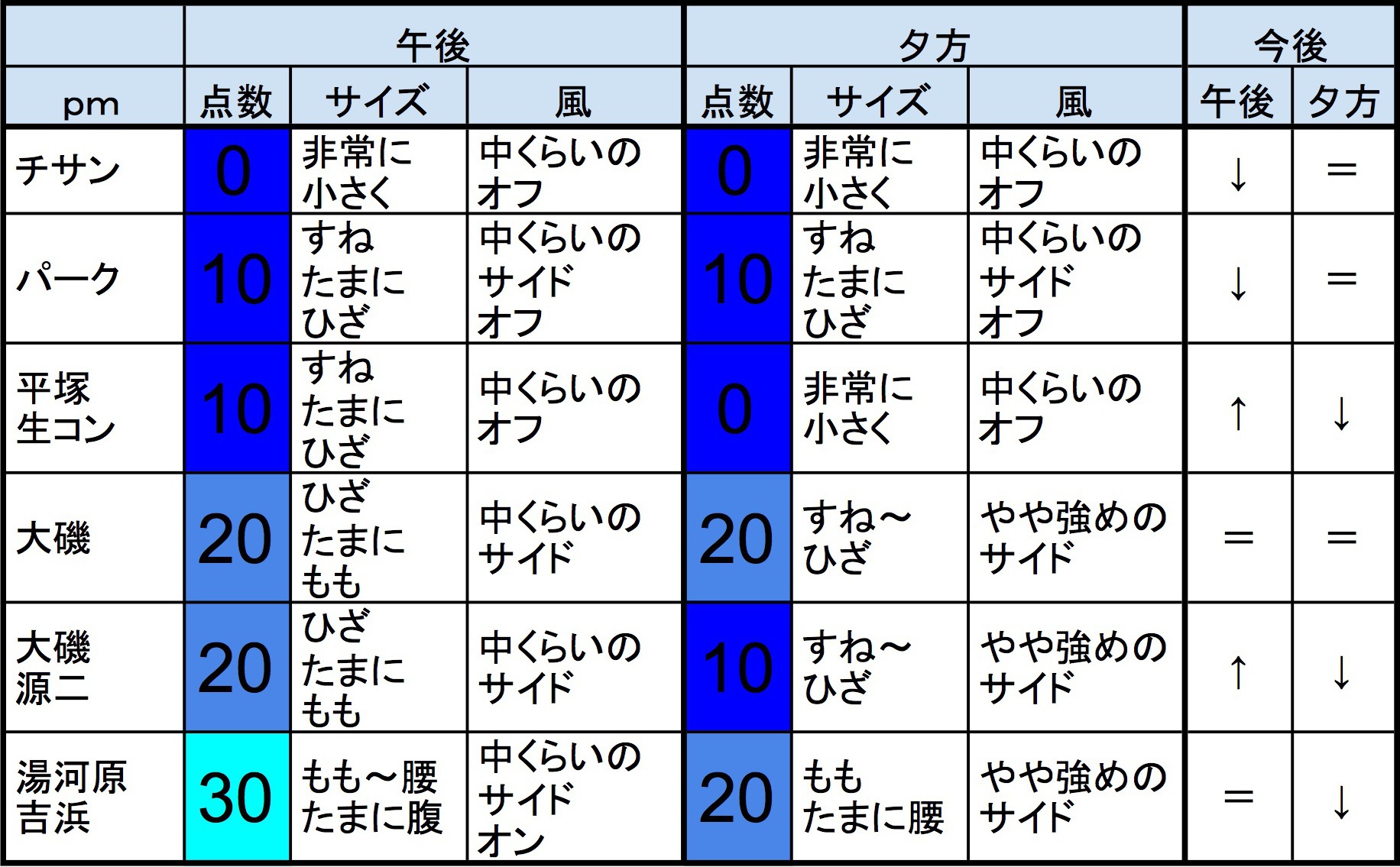 ・少し待ってみたほうが上向いてきそうな感じで、湯河原吉浜、周辺あたり狙いで、という感じでしょうか。-“