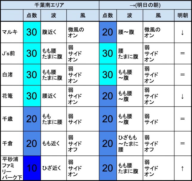 6月20日(木)最終〜明日6月21日(金)朝の千葉南の波 2019年6月20日 / U / コメントする 【千葉南エリア】-“・明朝の千葉南エリアはもも腰〜腹くらいの波、弱めのオンショアベースの風、いまいちなコンディションでのスタートとなりそうです。- ・J’s前、白渚、周辺あたりでは、多少期待できそうでしょうか。”