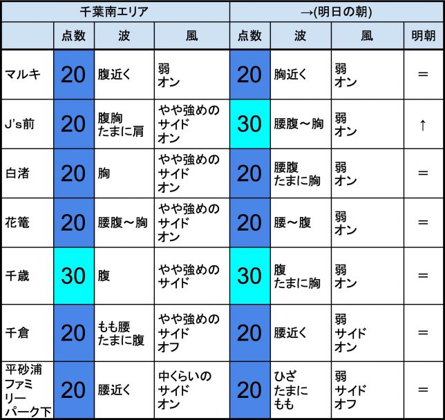 6月21日(金)最終〜明日6月22日(土)朝の千葉南の波 2019年6月21日 / U / コメントする 【千葉南エリア】-“・明朝の千葉南エリアは腹近くくらいの波、弱めのオンショアベースの風、いまいちなコンディションでのスタートとなりそうです。- ・J’s前、千歳、周辺あたりでは、多少期待できそうでしょうか。”