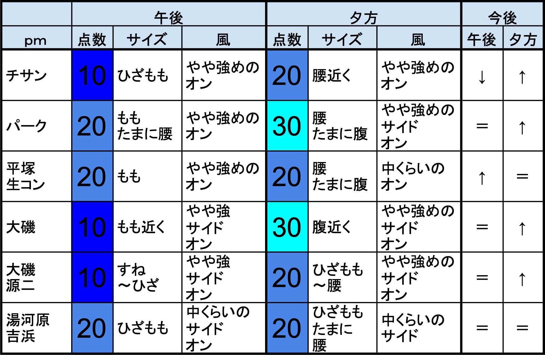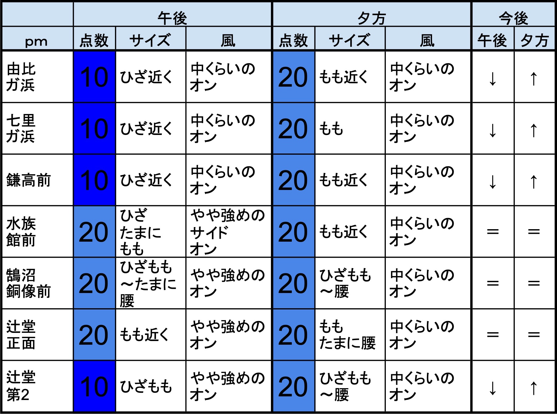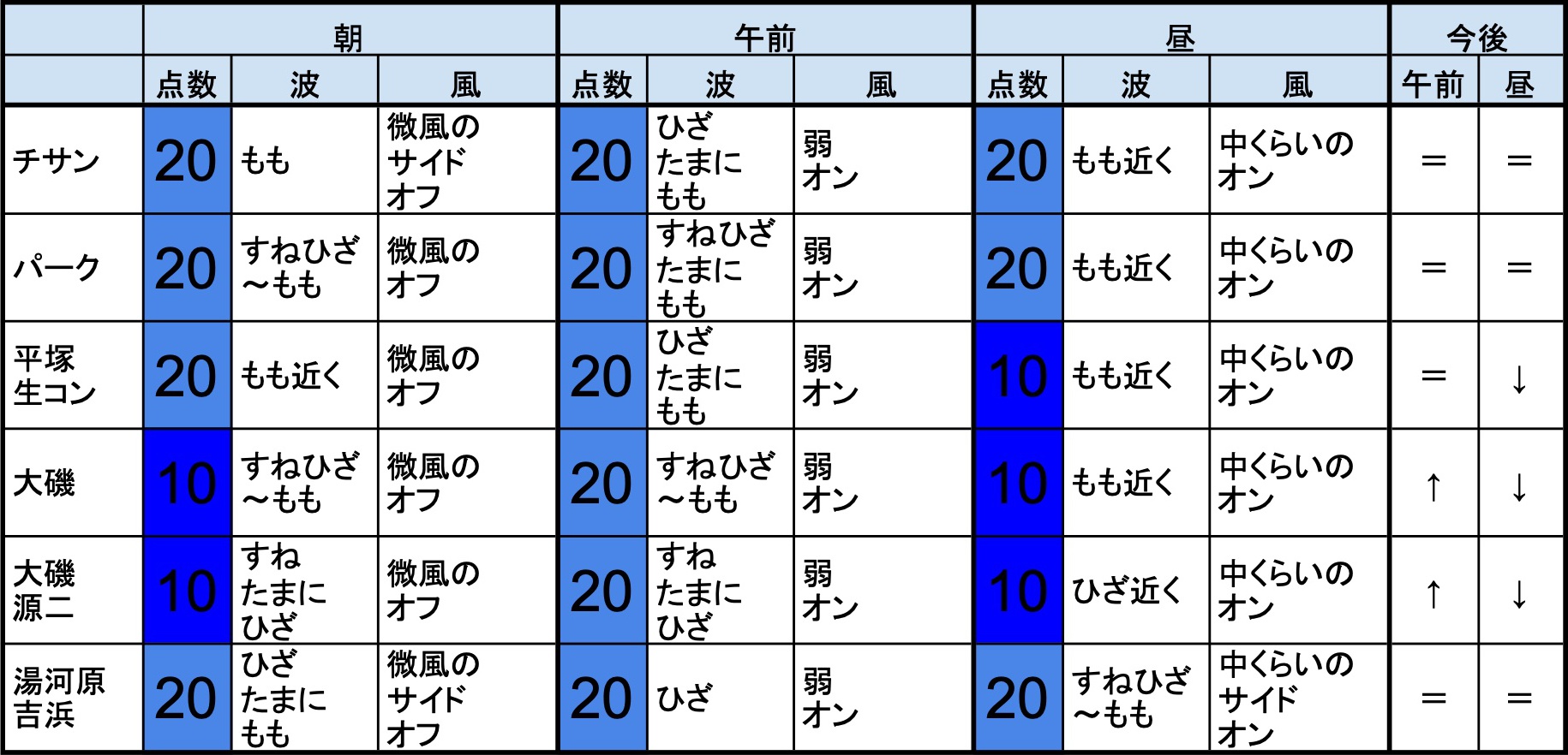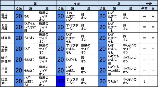 6月26日(水)朝の湘南の波 2019年6月26日 / U / コメントする 【湘南東エリア】-“・湘南 東エリアはもも近くくらいの波、弱めの風のスタート、プアなコンディションで、午前から昼にかけても状況はあまり変わらなさそうです。午後から夕方にかけてもコンディションはあまり変わらなさそうです。” 【湘南西エリア】-・湘南 西エリアはすねひざ〜ももくらいの波、弱めのオフショアベースの風のスタート、プアなコンディションで、午前から昼にかけても状況はあまり変わらなさそうです。午後から夕方にかけてもコンディションはあまり変わらなさそうです。-