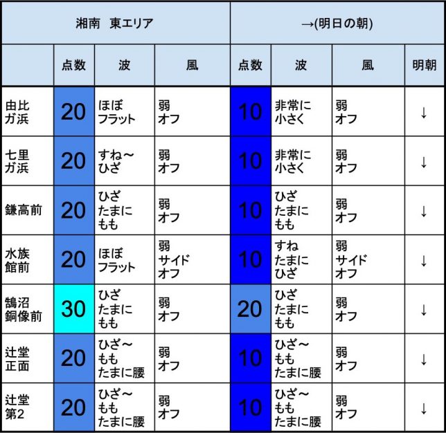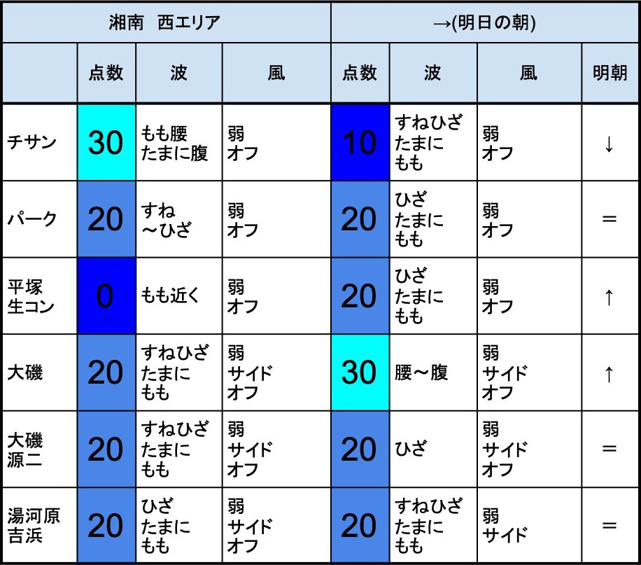 9月25日(金)最終〜明日9月26日(土)朝の湘南の波 2020年9月25日 / U / コメントする 【湘南東エリア】-“・明朝の湘南 東エリアは非常に小さく、弱めのオフショアベースの風、プアなコンディションでのスタートとなりそうです。 ・” 【湘南西エリア】-・明朝の湘南 西エリアはすねひざ〜ももくらいの波、弱めのオフショアベースの風、プアなコンディションでのスタートとなりそうです。-