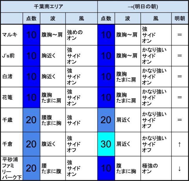 11月6日(月)最終〜明日11月7日(火)朝の千葉南の波 2023年11月6日 / U / コメントする 【千葉南エリア】-“・明朝の千葉南エリアは腹胸〜肩くらいの波、オンショアベースの風、いまいちなコンディションでのスタート- ・千倉、あたりでは多少期待”