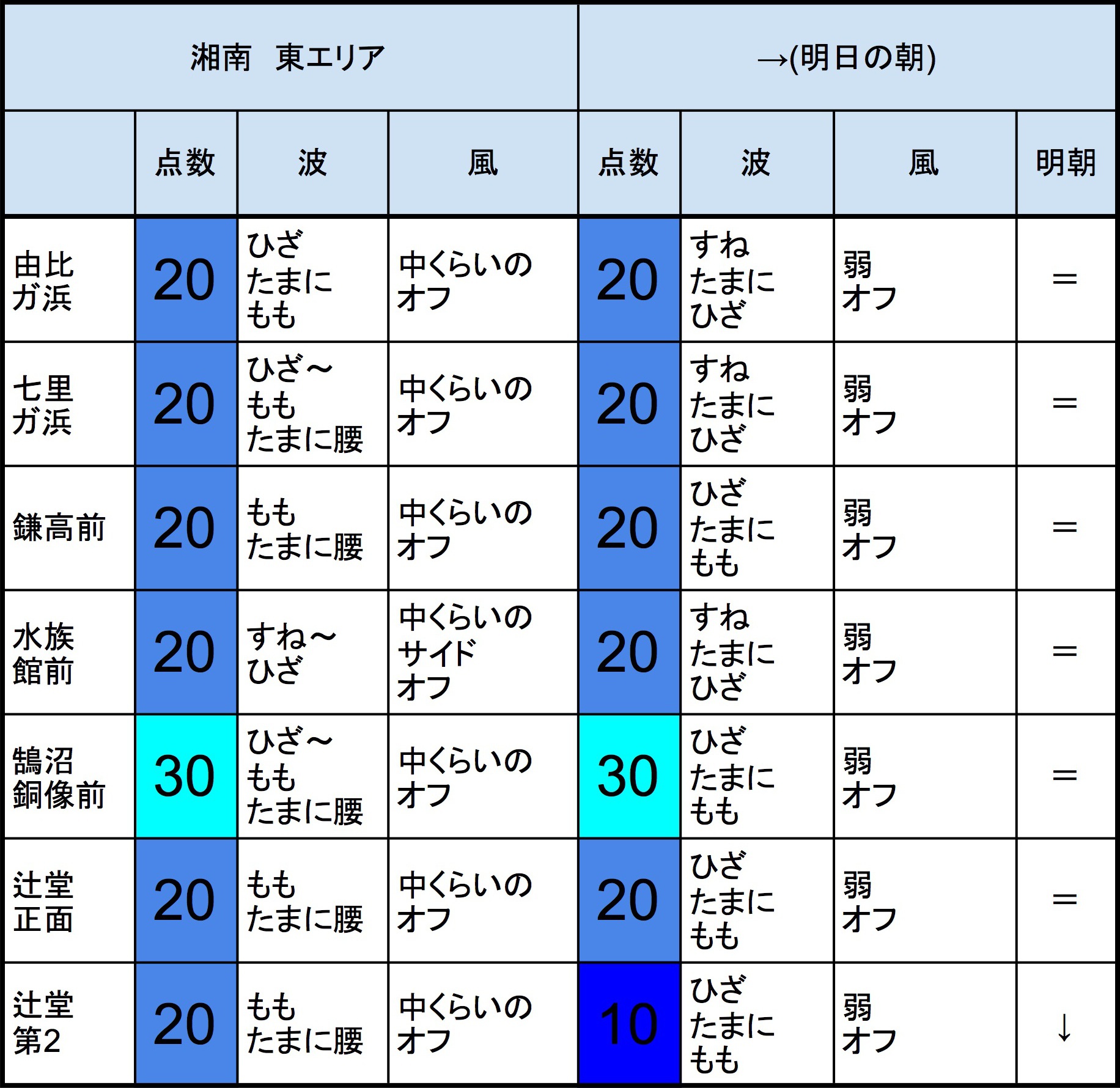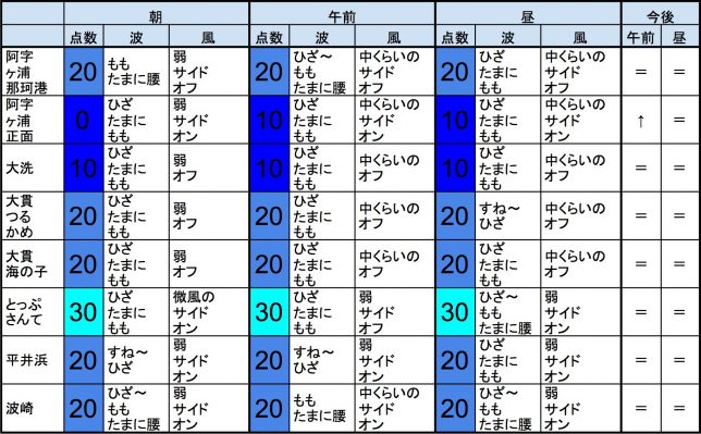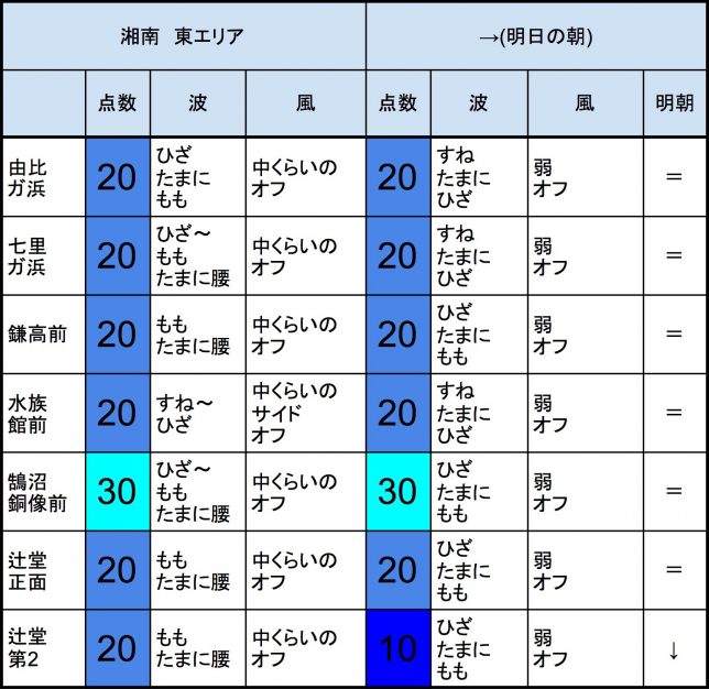 【千葉北 北部エリア】-“・明朝の千葉北 北部エリアはひざ〜ももくらいの波、オフショアベースの風、それほど良くなくても多少できそうなコンディションでのスタートとなりそうです。