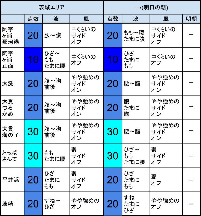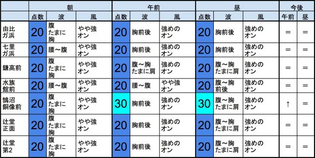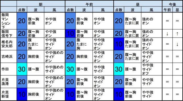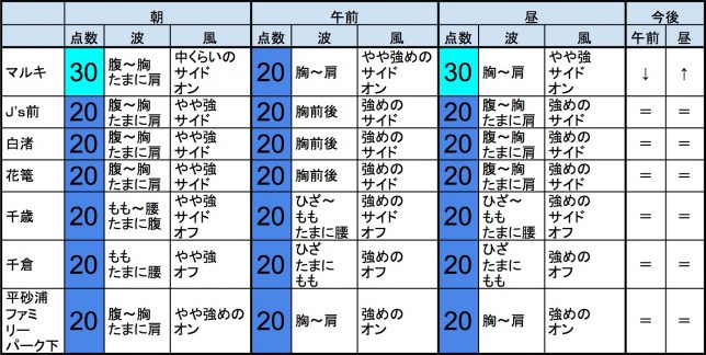 ・今もこの後もそれなりな感じで、早めなら、志田下、一宮、サンライズ、東浪見、あたり、後半なら、作田、一宮、サンライズ、東浪見、あたりが狙い目でしょうか。-“