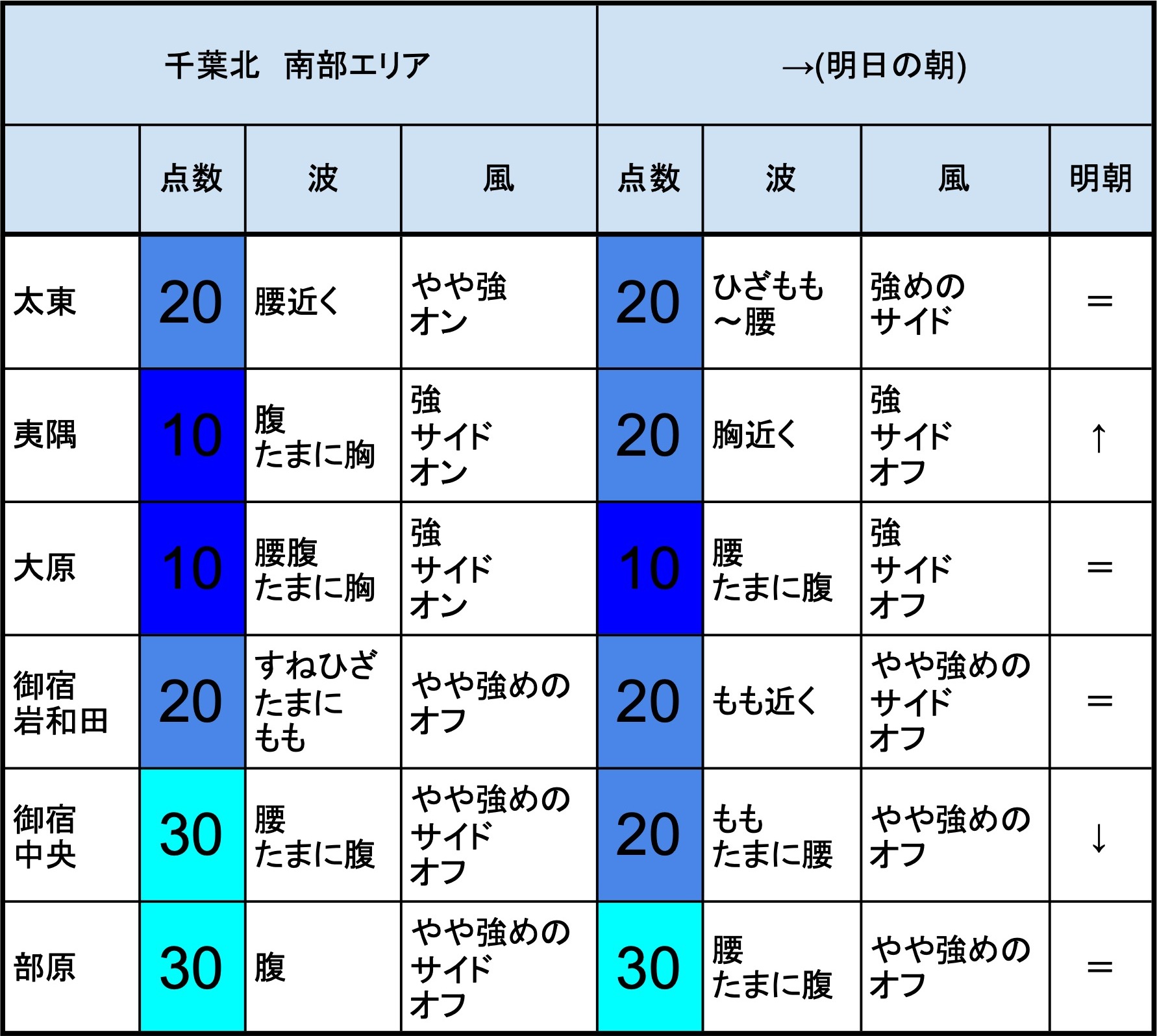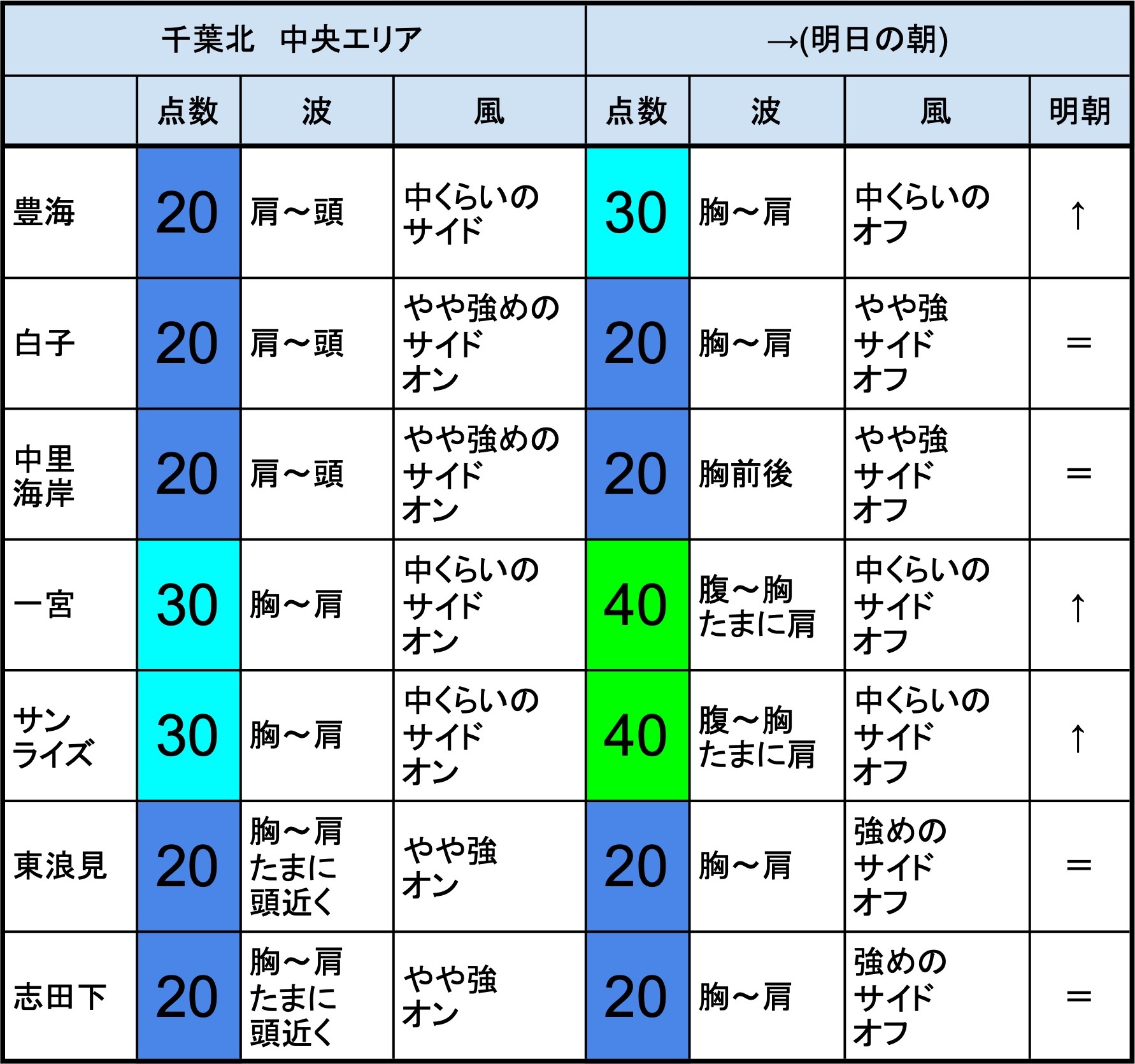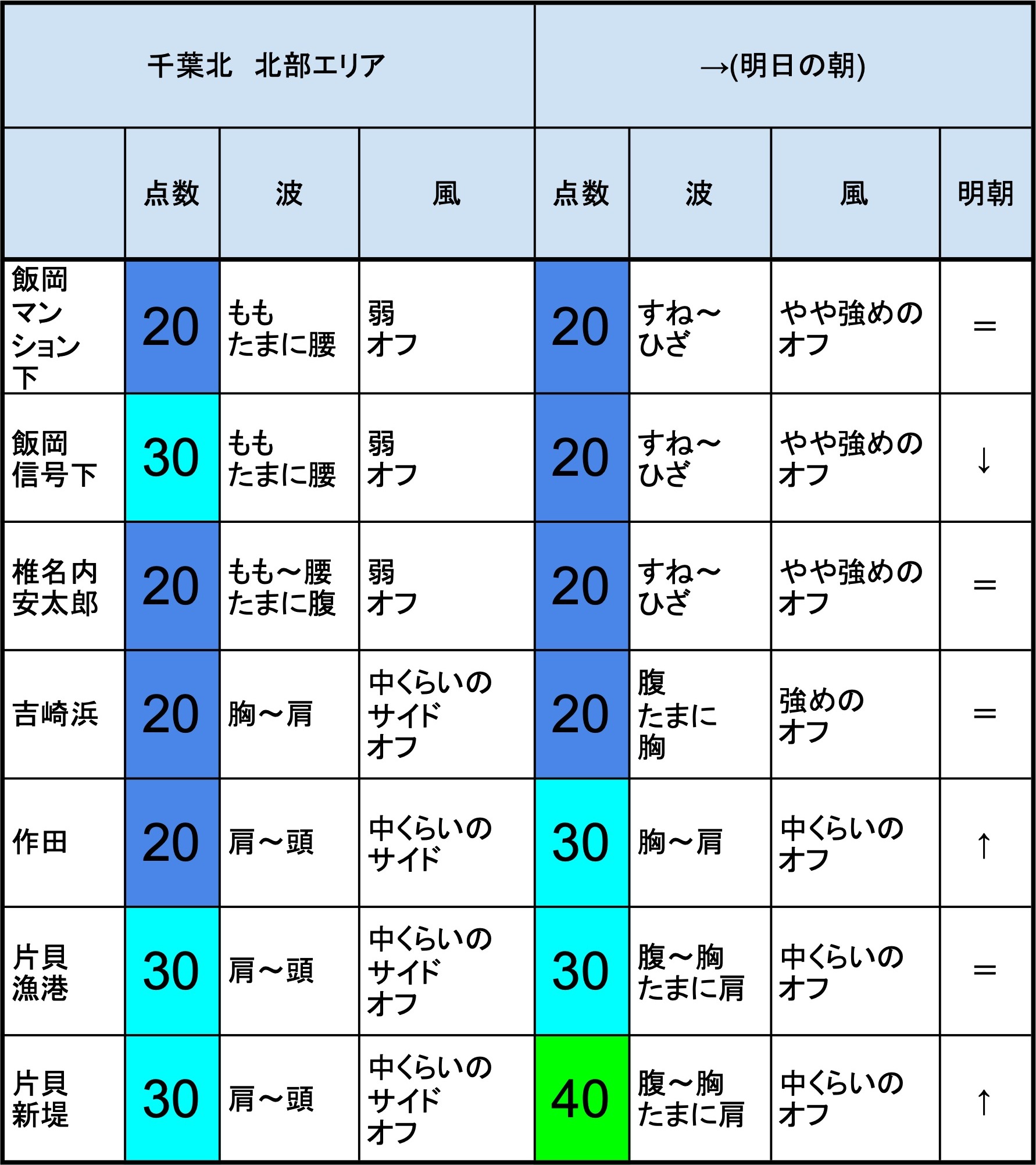 【千葉北 北部エリア】-“・明朝の千葉北 北部エリアは肩〜頭〜頭オーバくらいの波、オフショアベースの風、多少できそうなコンディションでのスタート-