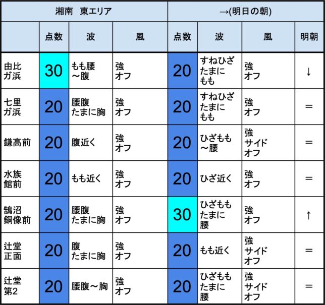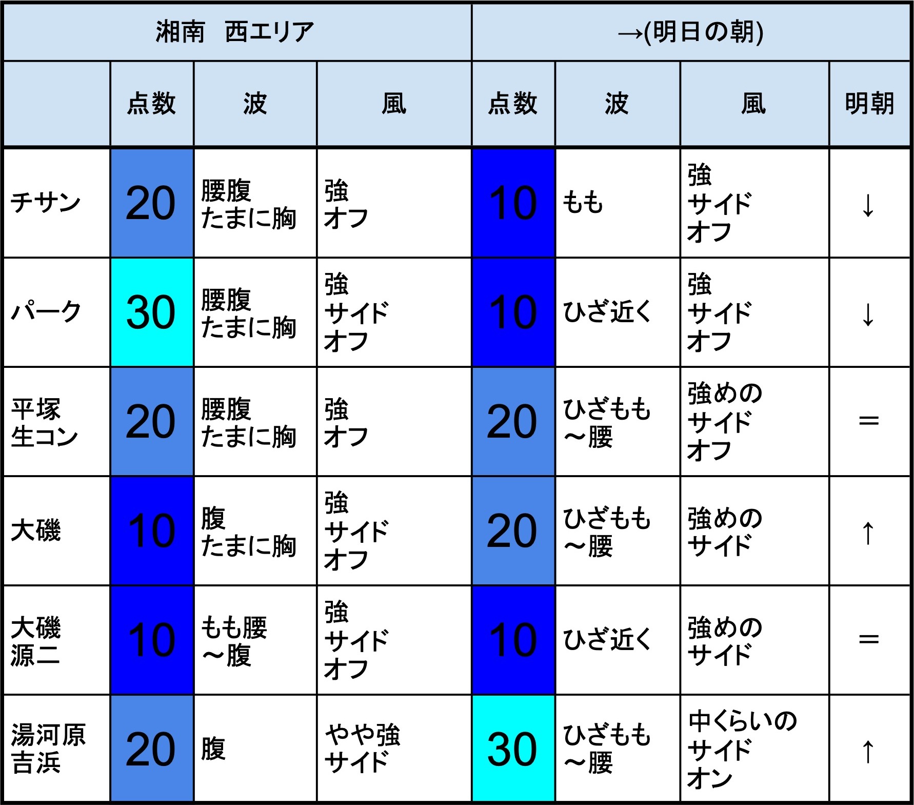 12月14日(木)最終〜明日12月15日(金)朝の湘南の波 2023年12月14日 / U / コメントする 【湘南東エリア】-“・明朝の湘南 東エリアはすね〜ひざくらいの波、オフショアベースの風、プアなコンディションでのスタート- ・鵠沼銅像前、あたりでは多少期待” 【湘南西エリア】-“・明朝の湘南 西エリアはすね〜ひざくらいの波、オフショアベースの風、プアなコンディションでのスタート- ・”