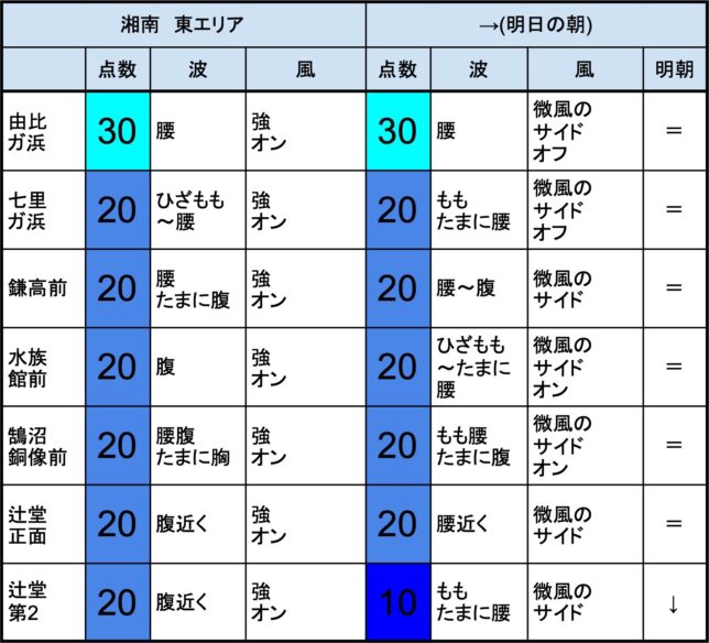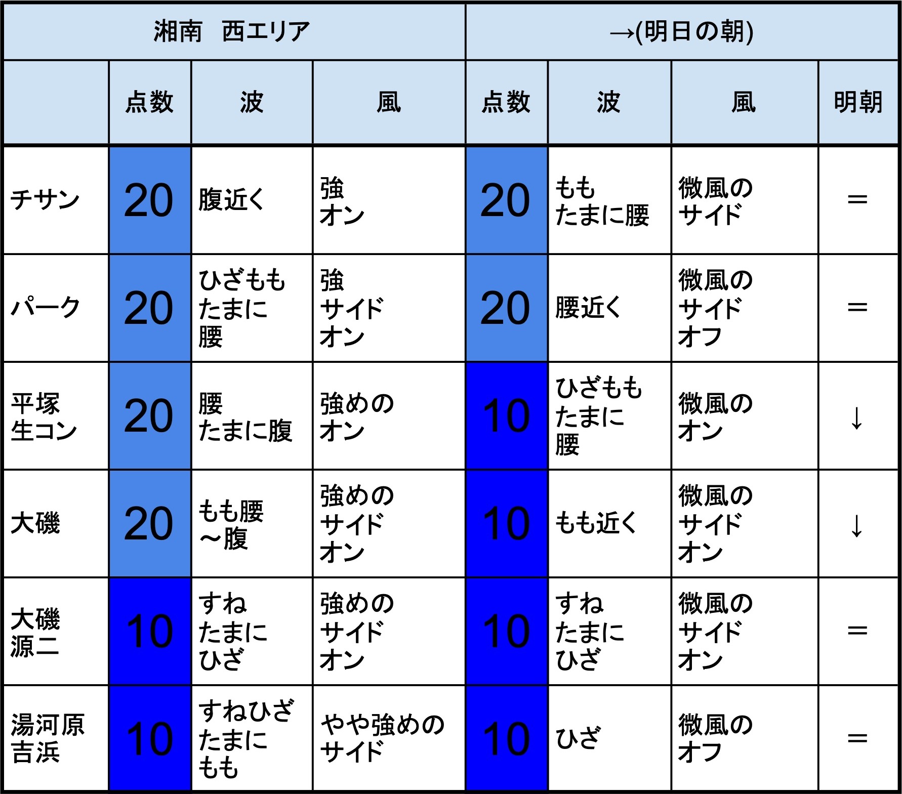 6月2日(金)最終〜明日6月3日(土)朝の湘南の波 2023年6月2日 / U / コメントする 【湘南東エリア】-“・明朝の湘南 東エリアは頭前後くらいの波、オフショアベースの風、期待できそうなコンディションでのスタート- ・由比ガ浜、七里ガ浜、鎌高前、辻堂正面、辻堂第2、チサン、水族館前、鵠沼銅像前、パーク、平塚生コン、湯河原吉浜、あたりでは多少期待” 【湘南西エリア】-“・明朝の湘南 西エリアは腹胸たまに肩くらいの波、オフショアベースの風、多少できそうなコンディションでのスタート- ・”