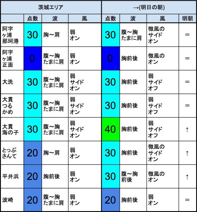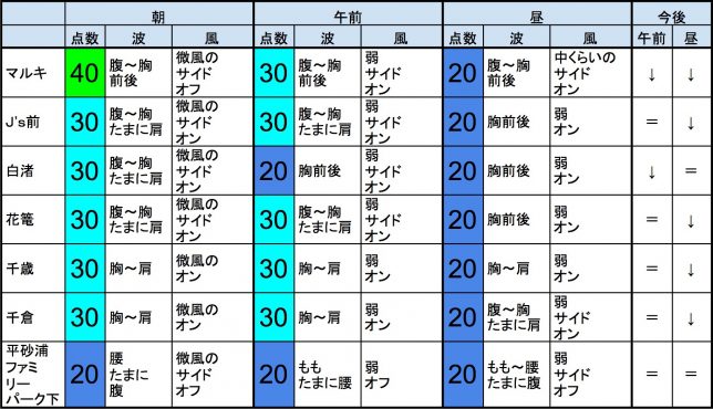 【千葉北 北部エリア】-“・千葉北 北部エリアは腹〜胸前後くらいの波、弱めの風のスタート、それほど良くなくても多少できそうなコンディションで、午前から昼にかけてもコンディションはそのままキープしそうです。午後から夕方にかけてもコンディションはそのままキープしそうです。-