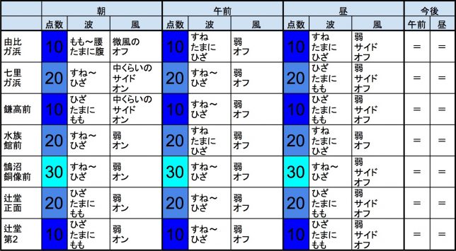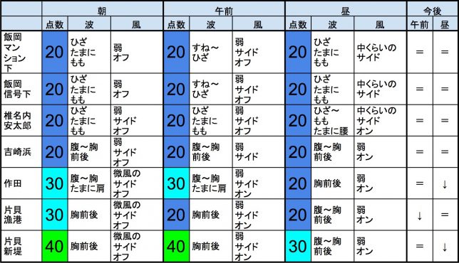 【千葉北 南部エリア】-・千葉北 南部エリアは腹〜胸前後くらいの波、弱めのオフショアベースの風のスタート、多少できそうなコンディションで、午前から昼にかけてもコンディションはそのままキープしそうです。午後から夕方にかけてもコンディションはそのままキープしそうです。-