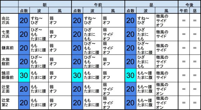 【千葉北 北部エリア】-“・千葉北 北部エリアは胸〜肩くらいの波、弱めの風のスタート、多少できそうなコンディションで、午前から昼にかけてもコンディションはそのままキープしそうです。午後から夕方にかけてもコンディションはそのままキープしそうです。-